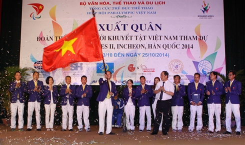 | Cérémonie marquant le départ de la sélection vietnamienne pour les 2es Jeux d'Asie handisport à Incheon, en République de Corée, le 8 octobre à Hanoi. |