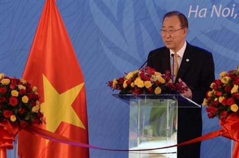 | Le secrétaire général de l'ONU Ban Ki-moon à Hanoi le 23 mai 2015. |