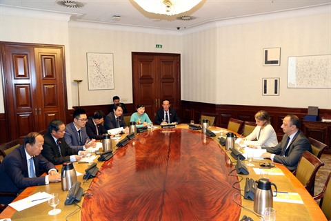 | Séance de travail entre les délégations vietnamienne (gauche) et espagnole, à Madrid. |