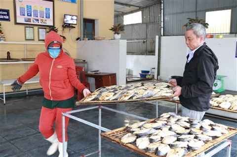 Le quartier de Nghi Hai, chef-lieu de Cua Lo, comprend une cinquantaine de foyers spécialisés dans la préparation de poissons grillés. Pour compléter l'offre existante, la famille de Truong Nhu Hùng vient d'acquérir une machine sous vide afin de maintenir au mieux la qualité des produits. Les poissons grillés sont non seulement un des aliments délicieux pendant le Têt traditionnel mais considérés aussi comme un cadeau particulier pour l'occasion. "Chaque jour, entre 300 et 400 kg de maquereaux grillés sont consommés. Une quantité doublée voire triplée est prévue à cette occasion", partage Truong Nhu Hùng.