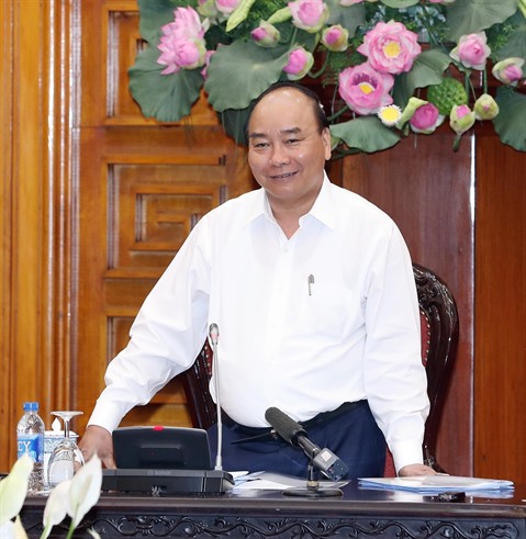 | Le Premier ministre Nguyên Xuân Phuc lors de la séance de travail le 15 mai à Hanoï. |