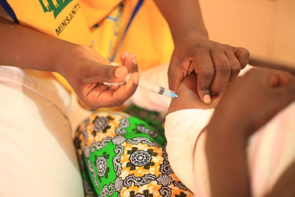 | Un enfant est vacciné dans un centre de santé à Douala, au Cameroun, le 22 janvier. |