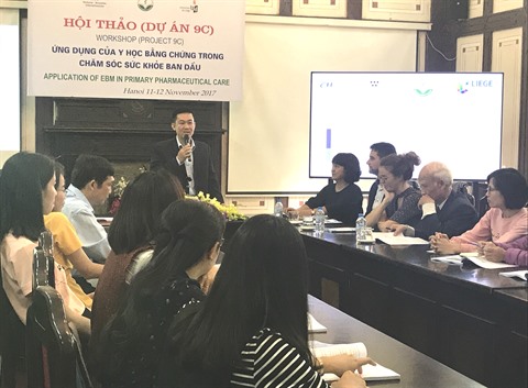 Des intervenants venus de l’Université de pharmacie de Hanoï ont présenté l’application de l’EBM dans diverses activités pédagogiques médicales au niveau de la pharmacie clinique et de la gestion pharmaceutique. L’atelier de deux jours s’est clôturé par un rapport de la doctorante Nguyên Thi Phuong Thuy de l’Université de pharmacie de Hanoï, suite à son stage au Centre hospitalier universitaire de Liège.