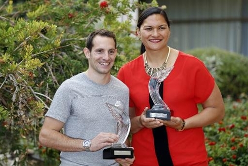 | Le perchiste Renaud Lavillenie et la lanceuse de poids néo-zélandaise Valerie Adams couronnés athlètes de l'année, lors du Gala de la Fédération internationale d'athlétisme, |