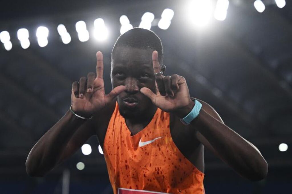 | Le sprinter botswanais Letsile Tebogo célèbre sa victoire sur le 100 m du meeting de la Ligue de diamant de Rome le 30 août. |