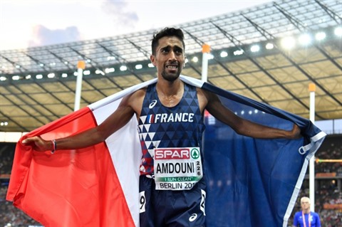 | Le Français Morhad Amdouni champion d'Europe du 10.000 m, le 7 août 2018 à Berlin. |