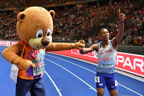 | Le Britannique Zharnel Hughes, sacré champion d'Europe sur 100 m, à Berlin le 7 août. |