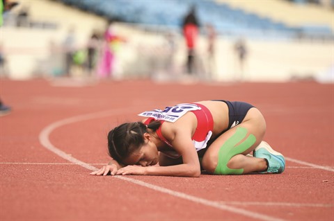 | La coureuse Hông Lê s’effondre après avoir battu le record national du 10.000 m. |