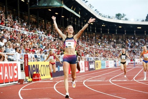 | La Néerlandaise Femke Bol remporte le 400 m haies du meeting Ligue de diamant de Stockholm, le 30 juin. |