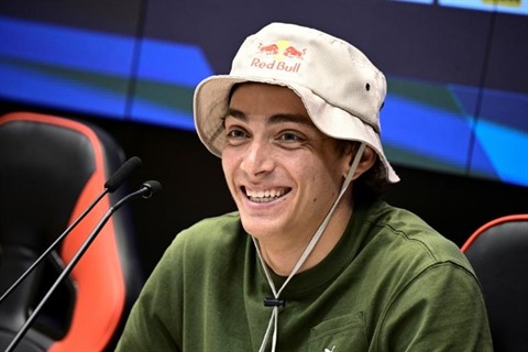 | Armand Duplantis en conférence de presse à la veille du meeting de Ligue de diamant, le 29 juin à Stockholm. |