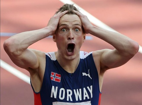 | Le Norvégien Karsen Warhlolm, champion olympique du 400m haies, avec un nouveau record du monde à la clé (45 sec 94), le 3 août aux Jeux olympiques de Tokyo 2020. |