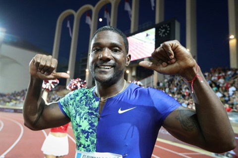 | L'Américain Justin Gatlin remporte le 100m à Monaco en Ligue de Diamant le 12 juillet. |