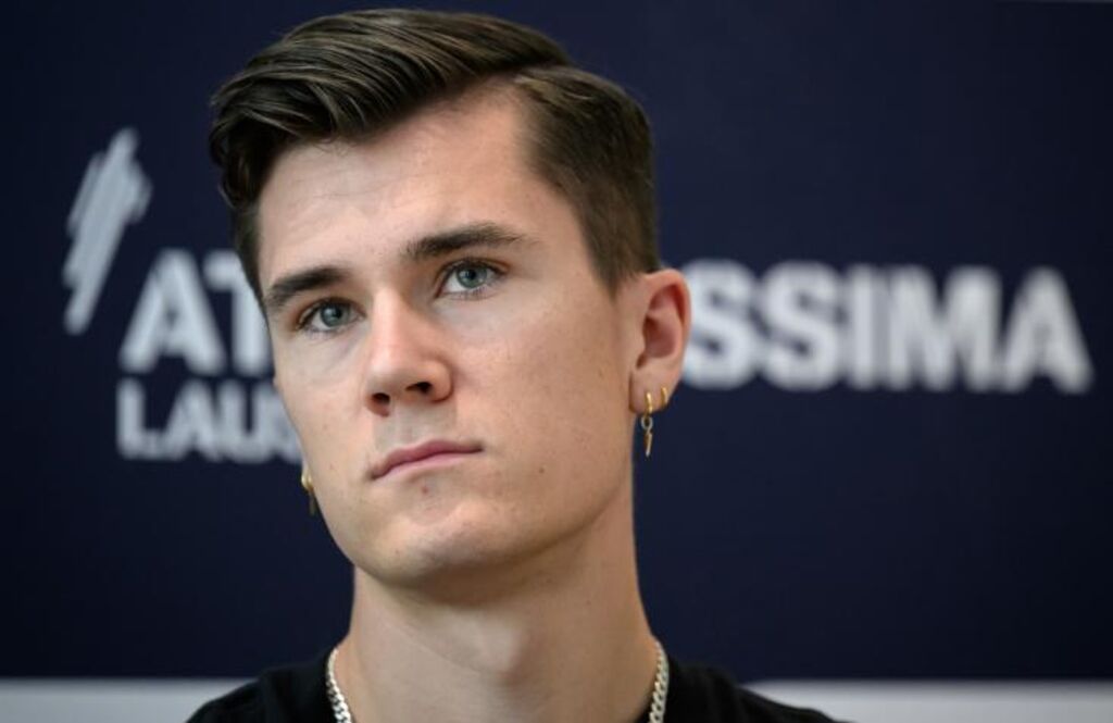 | Le Norvégien Jakob Ingebrigtsen en conférence de presse le 29 juin en amont du Meeting d'athlétisme de Lausanne. |
