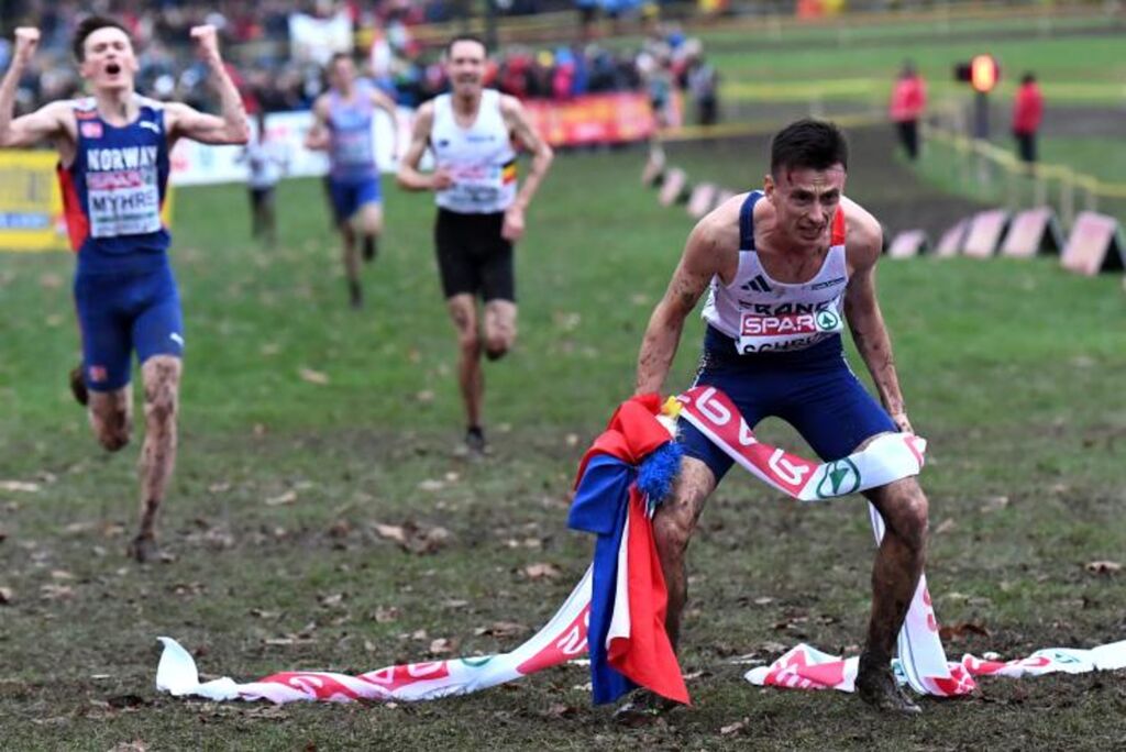 | Le Français Yann Schrub, champion d'Europe de cross le 10 décembre à Bruxelles. |