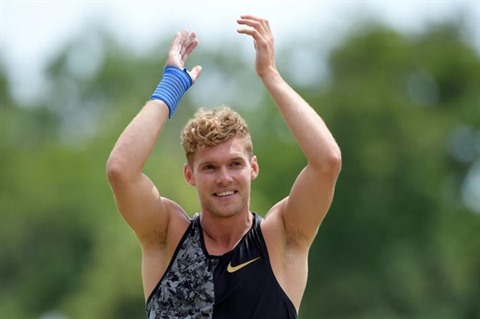 | Le décathlonie Kevin Mayer lors de l'épreuve du poids au décastar de Talence en Gironde |