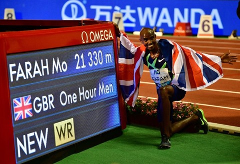 Farah (37 ans) efface ainsi des tablettes l'Éthiopien Haile Gebreselassie qui avait parcouru 21.285 km en 60 minutes le 27 juin 2007.