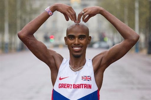 | Mo Farah, double médaillé olympique de Londres, pose devant le palais de Buckingham lors de la préparation au marathon de Londres, le 6 avril. |