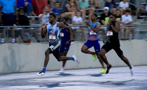 | Noah Liles en tête de la finale du 200 m aux Championnats des États-Unis d'athlétisme, le 28 juillet à Des Moines dans l'Iowa. |