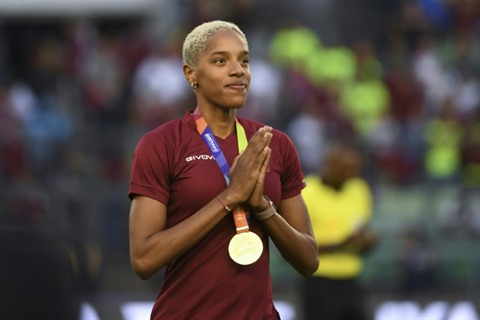 La Vénézuélienne, qui dépassait pour la première fois la barre des 15,00m dans un grand championnat, s'est approchée à seulement sept centimètres du record du monde en plein air du triple saut féminin, établi à 15,50m par l'Ukrainienne Inessa Kravets le 10 août à Göteborg.