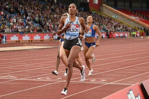 | La Française Renelle Lamote dans la foulée de l'Américaine Ajee Wilson victorieuse du 800 m à Birmingham, le 18 août. |