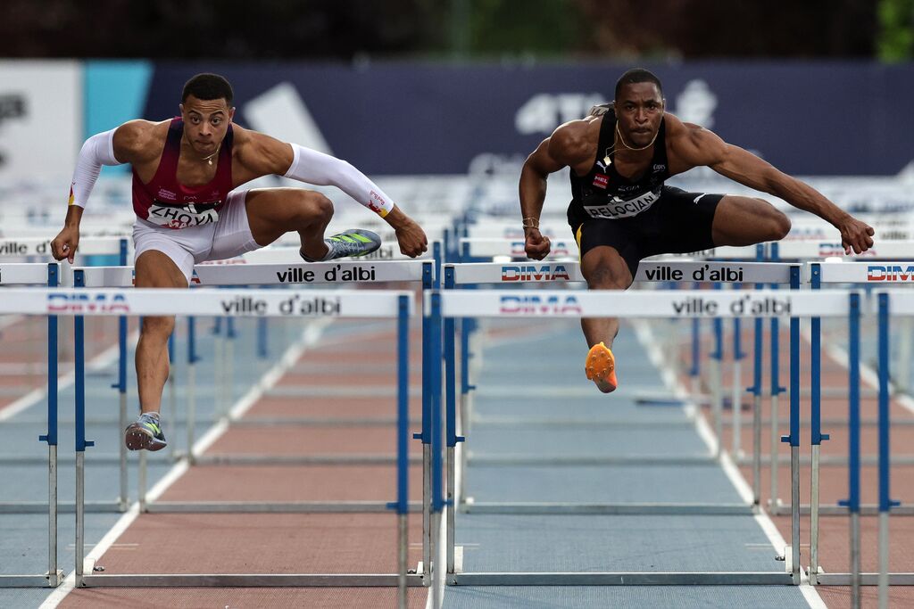 | Sasha Zhoya champion de France du 110 m haies le 29 juillet à Albi. |