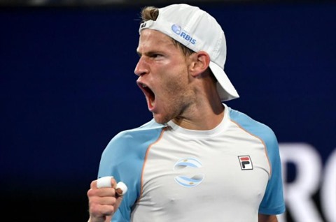 | La joie de l'Argentin Diego Schhwartzman, après avoir battu le Grec Stefanos Tsitsipas, 6-7 (5/7), 6-3, 6-3, à l'ATP Cup par équipes, le 3 janvier à Sydney. |