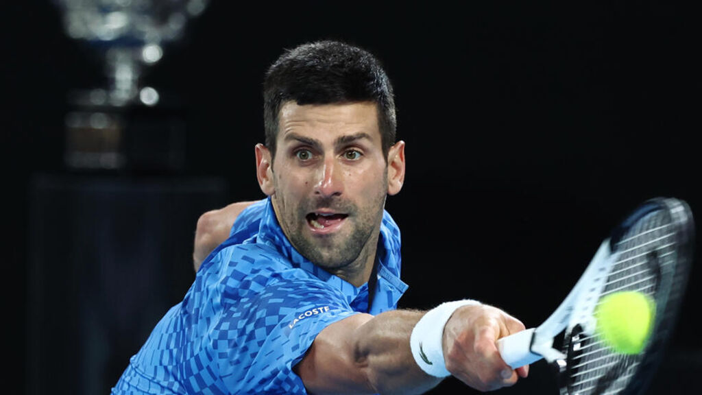 | Le Serbe Novak Djokovic lors de la finale de l'Open d'Australie 2023 contre le Grec Stefanos Tsitsipas, le 29 janvier à Melbourne. |
