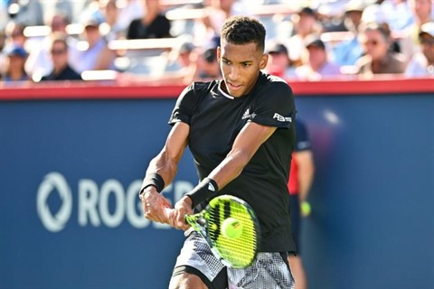 | Le Canadien Felix Auger-Aliassime contre Cameron Norrie au 3e tour du Masters 1000 de Montréal le 11 août à Montréal. |