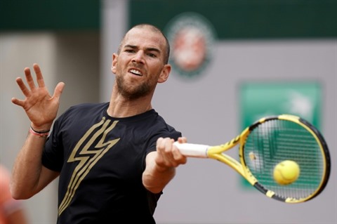 | Le Français Adrian Mannarino lors du 2e tour de Roland-Garros le 30 mai. |