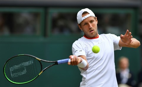 | Le Français Lucas Pouille à Wimbledon, le 6 juillet. |