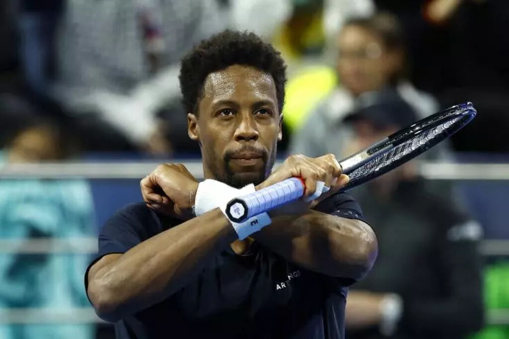 | Gaël Monfils fête sa victoire face à Ugo Humbert en quart de finale du tournoi de Doha le 22 février 2024 au Qatar. |