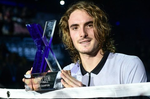 | Le Grec Stefanos Tsitsipas, vainqueur du Masters Next Gen, le 10 novembre, à Milan. |