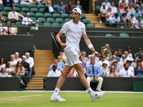 | Le Français Ugo Humbert au tournoi de Wimbledon, le 8 juillet. |