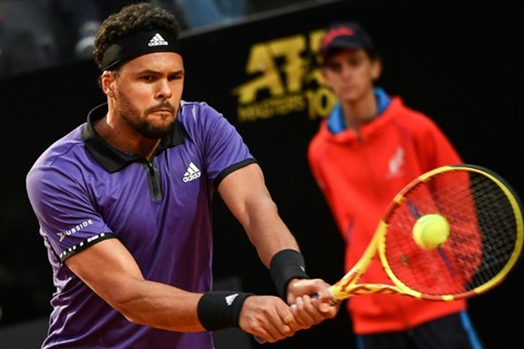| Le Français Jo-Wilfried Tsonga contre l'Italien Fabio Fognini au tournoi de Rome, le 13 mai. |
