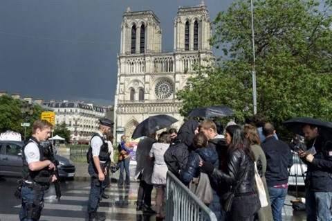 | La police près de la cathédrale Notre-Dame, le 6 juin à Paris. |