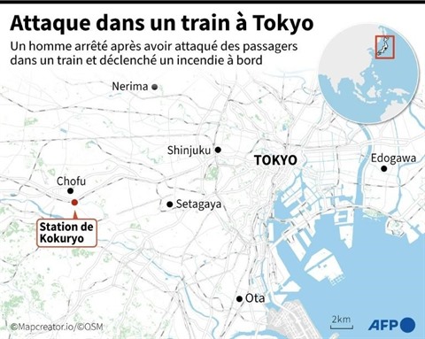 Sollicitée par l'AFP, la police a décliné tout commentaire, et la compagnie ferroviaire Keio a déclaré qu'"un incident impliquant des blessés" s'était produit peu avant 20h00 (11h00 GMT) près de Kokuryo, dans la banlieue ouest de Tokyo.