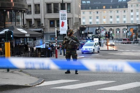 Un soldat belge monte la garde devant la gare centrale de Bruxelles après une explosion, le 20 juin. Photo : AFP/VNA/CVN |