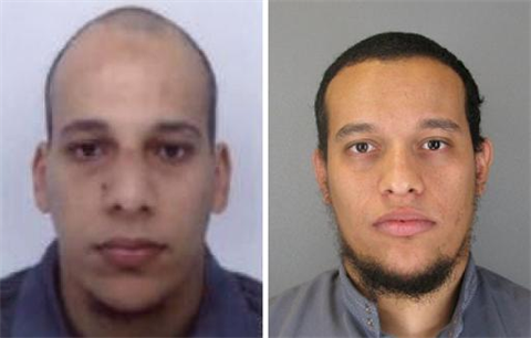 | Photos, diffusées le 8 janvier par la police à Paris, des suspects Cherif Kouachi (gauche) et son frère Saïd Kouachi, recherchés pour l'attentat contre Charlie Hebdo |