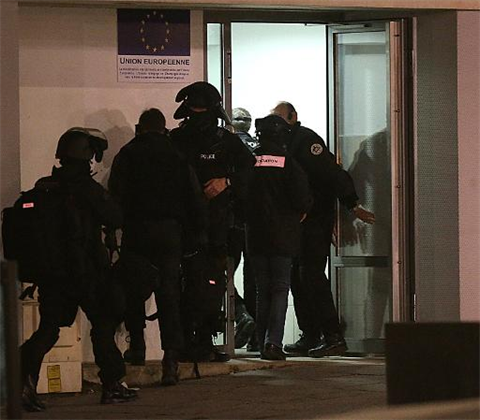 | La police lors d'une opération dans le quartier de la "Croix-Rouge" à Reims, le 8 janvier après l'attentat contre Charlie Hebdo à Paris. |