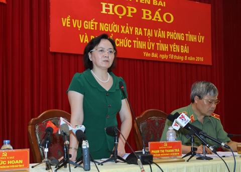 Lors d’une conférence de presse donnée à l'après-midi du 18 août, la secrétaire adjointe du Comité provincial du Parti et présidente du Comité populaire provincial, Pham Thi Thanh Trà, a confirmé que l’agresseur était le chef de l’agence des gardes forestiers de Yên Bai, Dô Cuong Minh. Après avoir fait feu sur ces deux dirigeants, il s’est suicidé et est décédé dans l’hôpital.