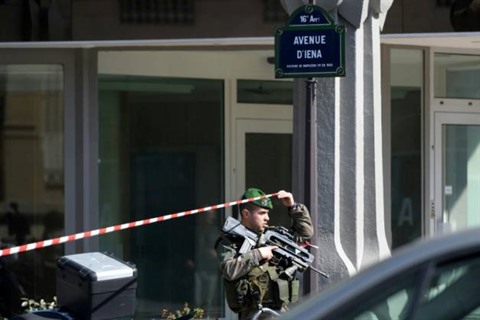| Un militaire sécurise les abords des bureaux du FMI à Paris, le 16 mars. |