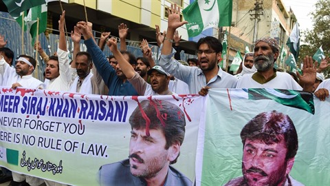 | Une manifestation à Quetta au Pakistan le 18 juillet, en mémoire de Mir Siraj Raisani, candidat à un siège de député tué dans l'attaque du 13 juillet qui a fait 149 morts. |