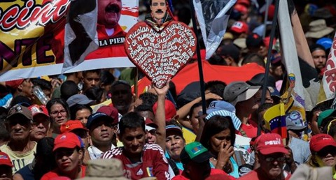 Une marée rouge de partisans du gouvernement avec des portraits du chef de l'État a défilé jusqu'au palais présidentiel de Miraflores. Contrairement à ce qui était annoncé, M. Maduro ne s'est pas montré à l'arrivée du cortège.