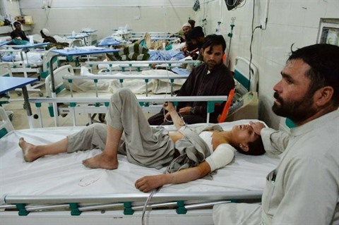 | Un blessé dans un hôpital de Jalalabad, après un attentat contre un poste de contrôle de la police, le 13 juin |