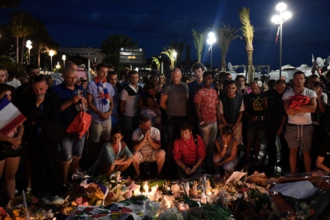 | Hommages aux victimes de l'attaque de Nice, le 15 juillet 2016, au lendemain du drame. |