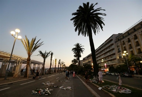 | Des gens déposent des fleurs sur la promenade des Anglais, le 18 juillet à Nice. |