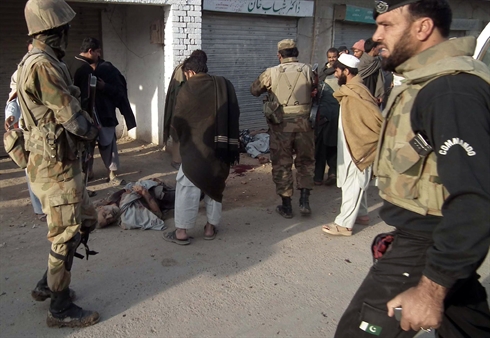 | Sur le lieu de l’attentat suicide contre un poste de police de Kaki, situé à 13 km de la ville de Bannu, au Nord du Pakistan, le 10 décembre. Photo : AFP/VNA/CVN |