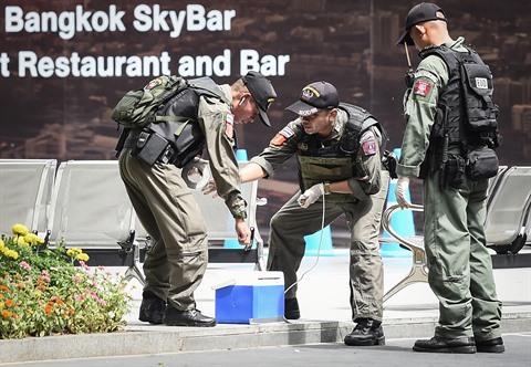 | La police thaïlandaise investit les lieux d'une explosion. |