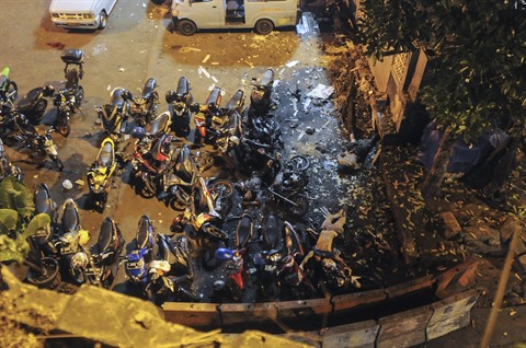 | Sur le lieu d'attentat, le 25 mai à Jakarta. |