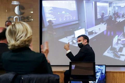 | Le président français Emmanuel Macron regarde l'atterrissage du rover de la NASA Perseverance sur Mars, sur lequel la France a collaboré, au siège parisien du Centre national d'études spatiales (Cnes) |